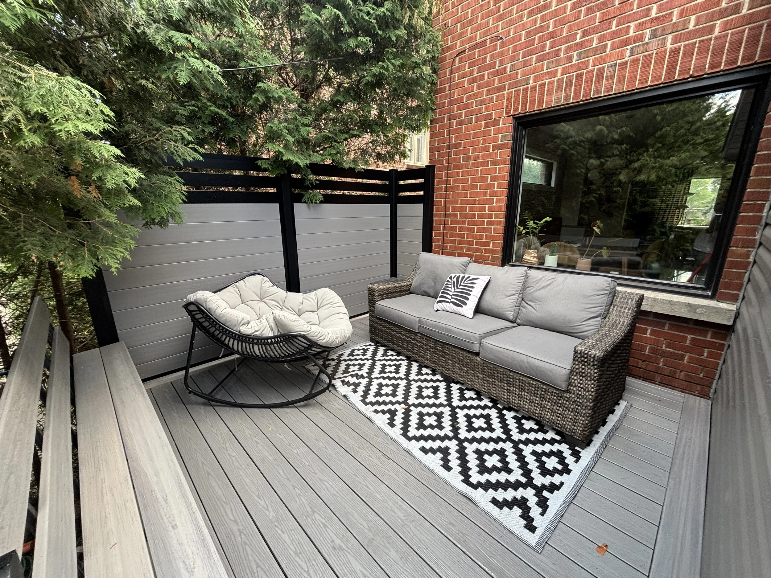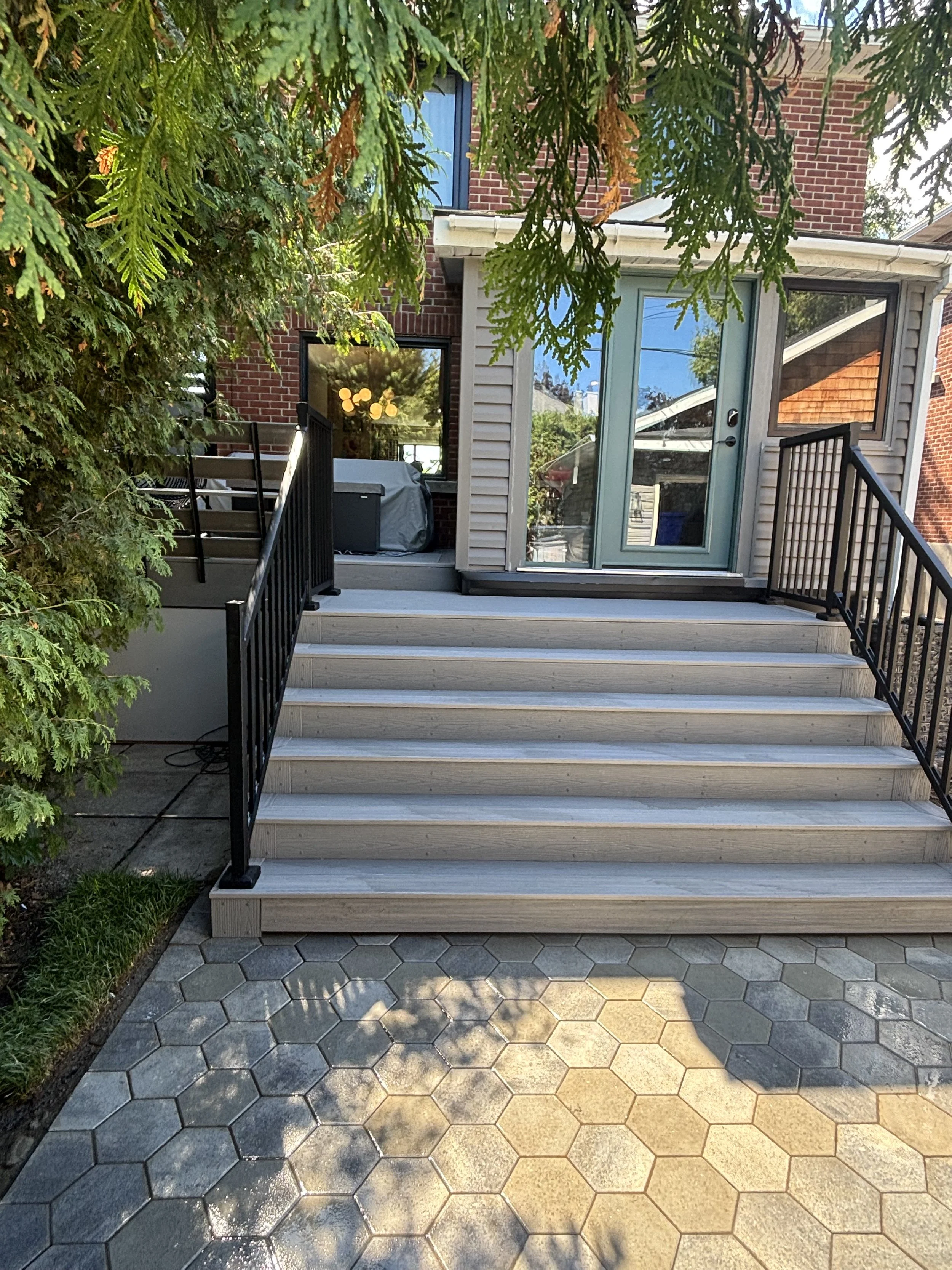 If you want to ditch the deck for interlock or a concrete pad, we can help with both.